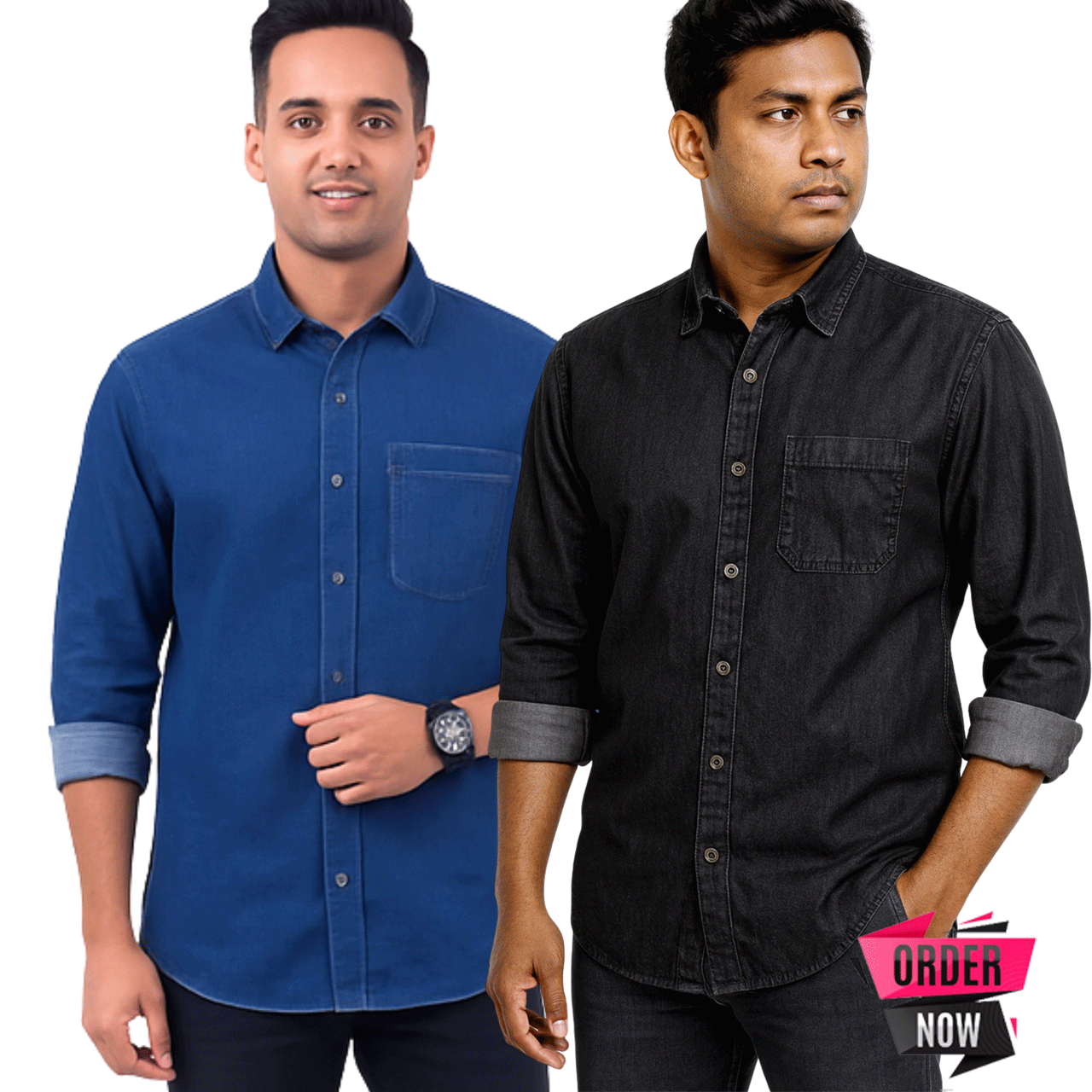 2 Pcs Denim Full Sleeve Single Poket-Black+ Navy
