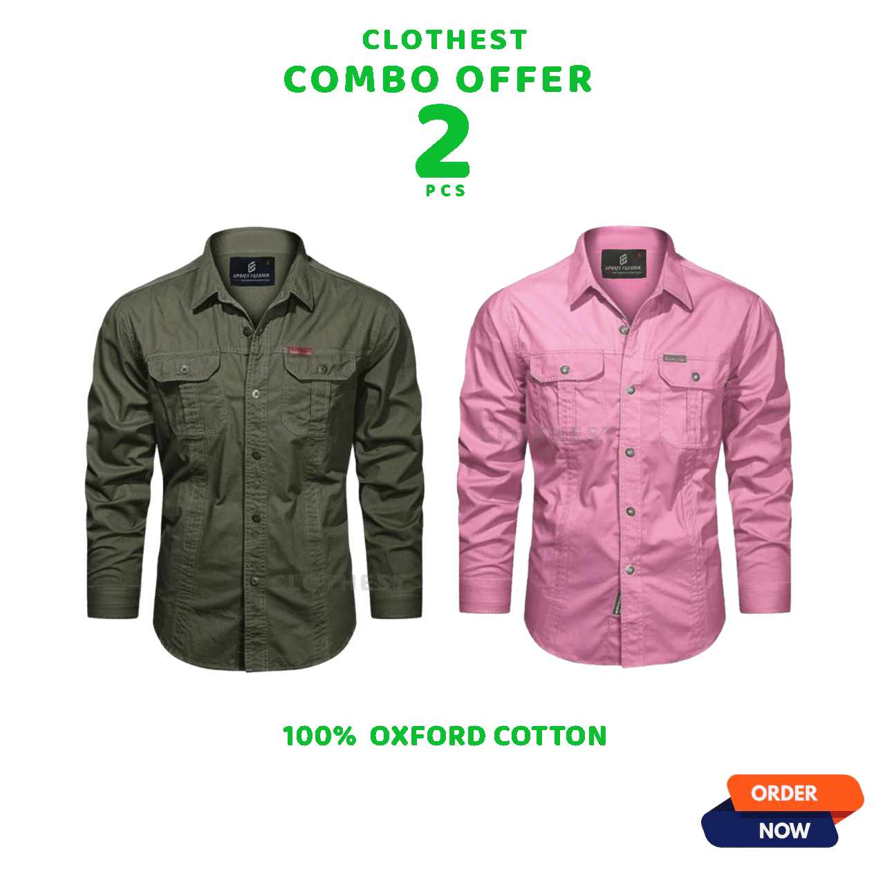 2 Pcs Cord Full Sleeve Shirt – Mint+Jolpai