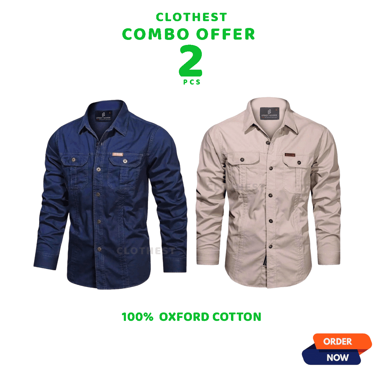2 Pcs Cord Full Sleeve Shirt – Ash+Navy