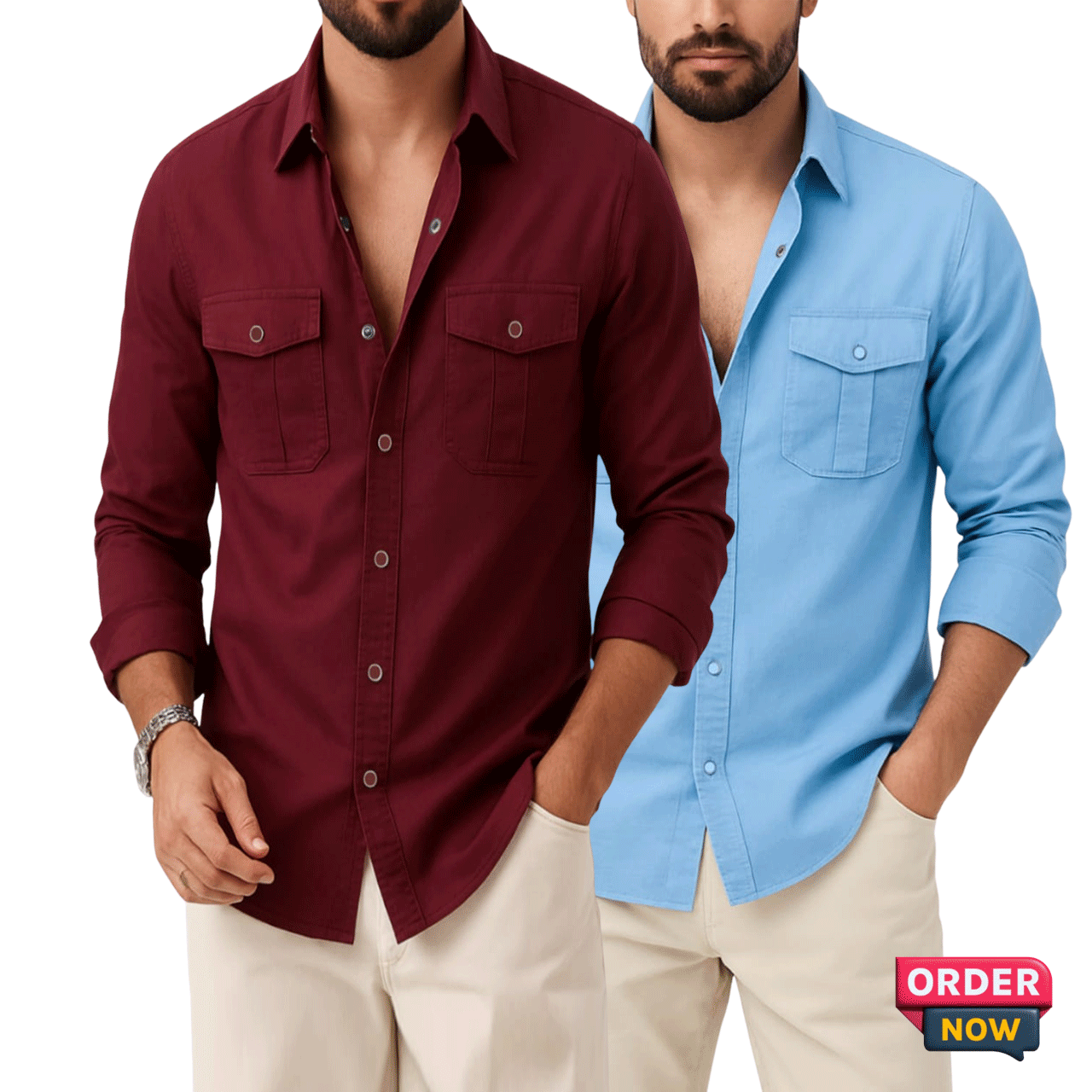 2 Pcs Cord Full Sleeve Shirt – Navy + Meroon