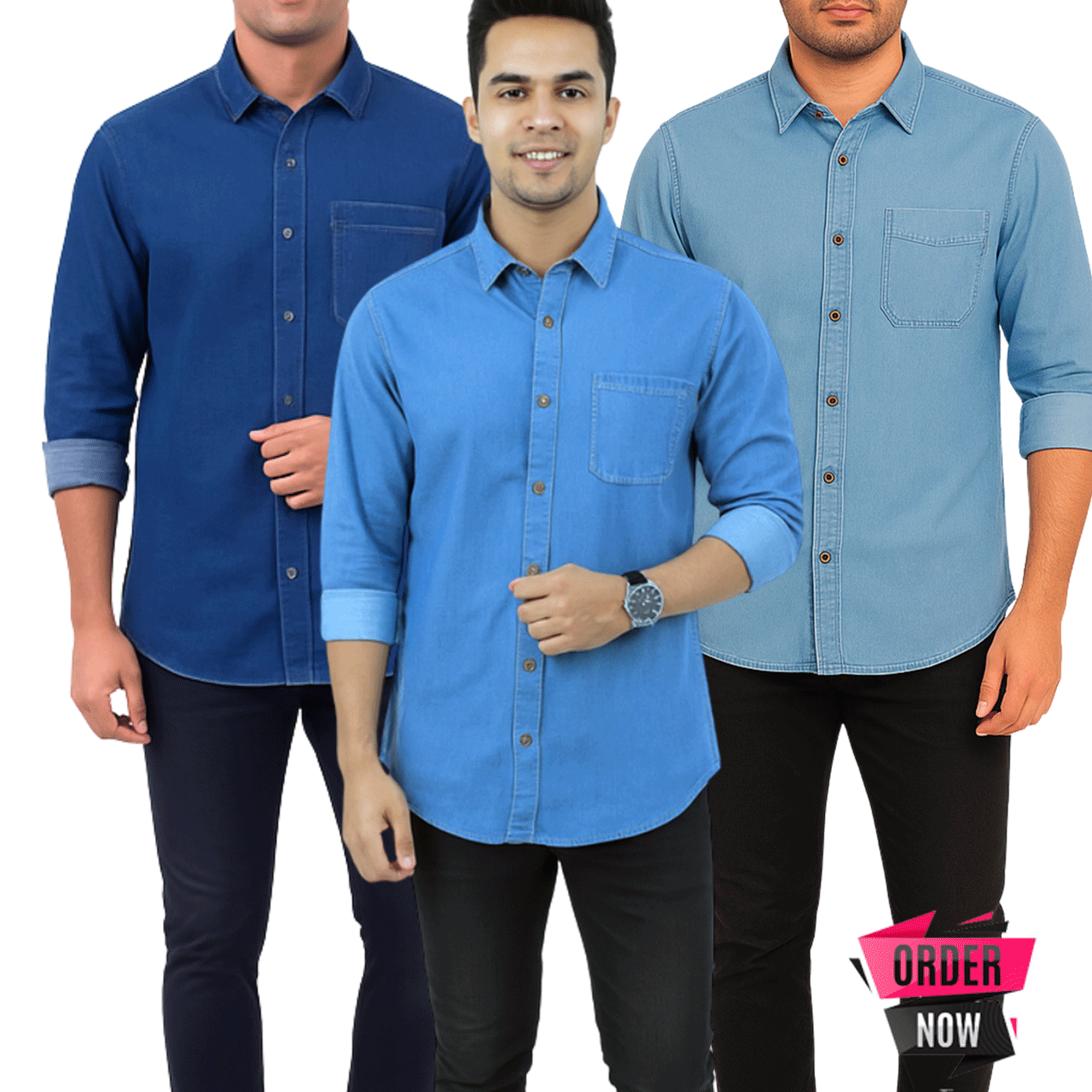 3 Pcs Denim Full Sleeve Single Poket- Black+Navy+Sky
